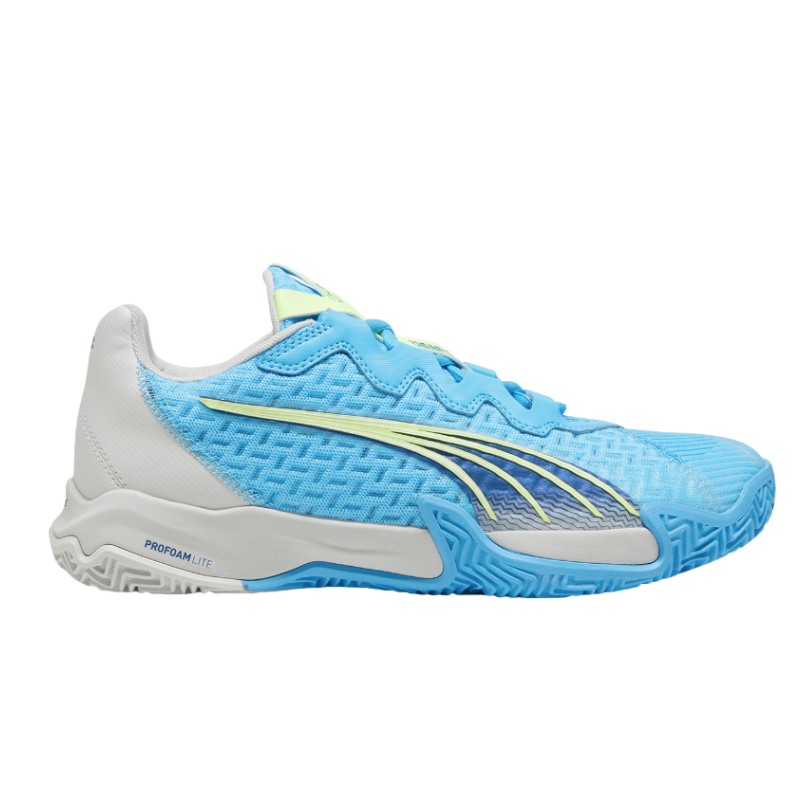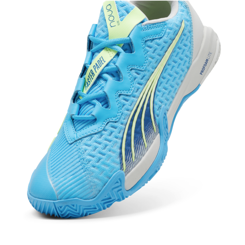 Elevate your padel performance with the Puma Nova Elite Men's Shoes in Luminous Blue/Cobalt Glaze/Gray. These shoes are engineered for agility and speed, featuring a breathable mesh upper with durable overlays for optimal support and ventilation. The compression-molded EVA midsole offers responsive cushioning, while the non-marking rubber outsole with a herringbone tread pattern ensures superior traction for quick direction changes. Designed to meet the demands of high-intensity play, the Nova Elite combines style and functionality to keep you at the top of your game.