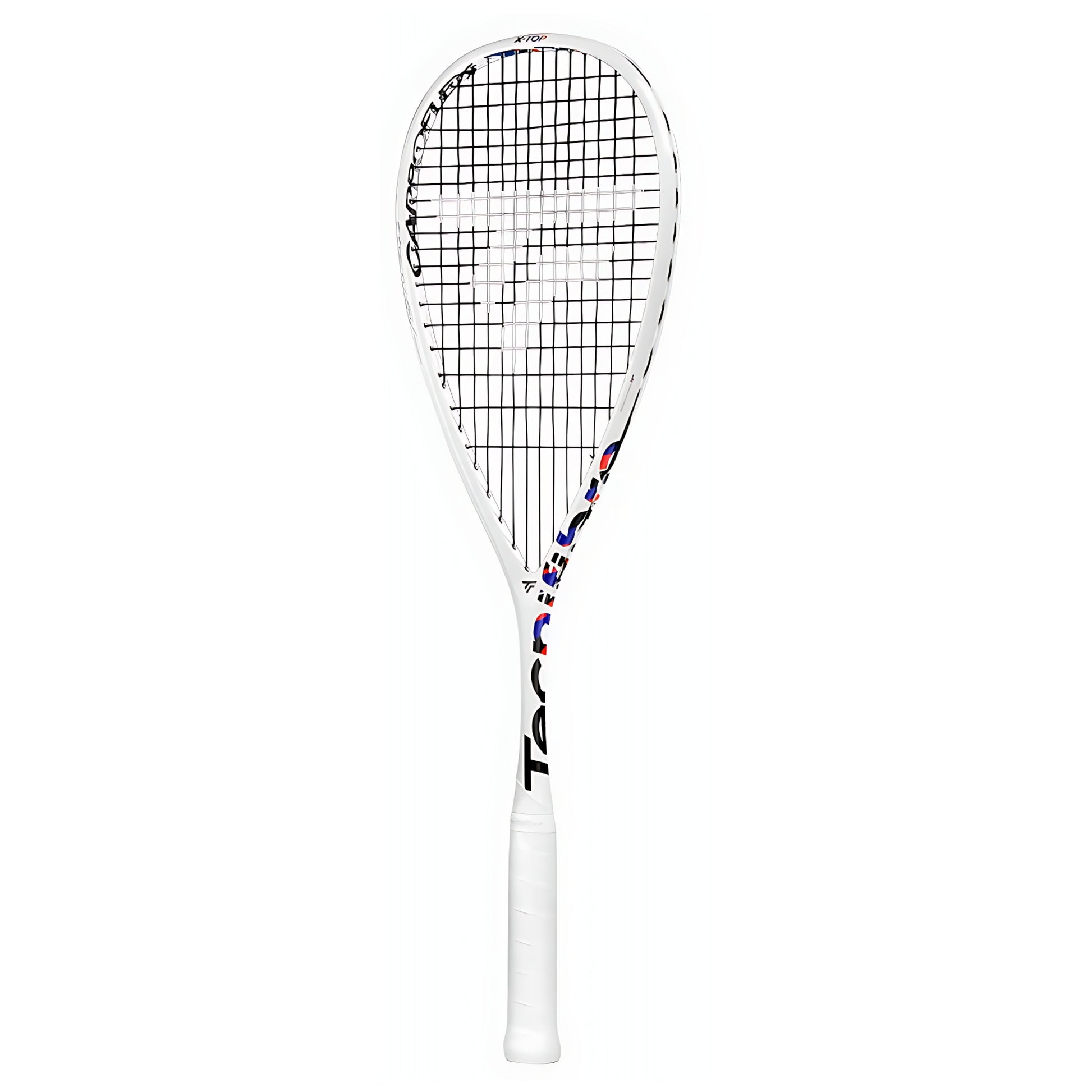 The TECNIFIBRE CARBOFLEX 125 X-TOP V2 125g squash racket has been designed to maximize swing speed for players, especially for high-level competitors, regular players, and more specifically women. With its lightweight of 125g and a thinner handle than the other rackets in the range, it offers exceptional maneuverability. The 500 cm² head size offers a perfect compromise between power and stability, and it is strung with Dynamix VP polyurethane multifilaments, Tecnifibre 's most responsive string. The CARBOFLEX X-TOP V2 range pushes the boundaries of innovation thanks to the patented X-TOP technology. The bumper (protecting the racket head) has been removed for an entirely new construction, optimizing performance. It is replaced by a combination of active fibers, including aramid fibers, a material highly resistant to shocks, and a PTFE treatment that improves glide and protects the racket against abrasion. Without a bumper, the racket is smoother and penetrates the air better, thus offering maximum swing speed and power. Replacing plastic with these materials also allows for better responsiveness, less vibration, and more comfort. The CARBOFLEX X-TOP V2 range is used by squash legends such as Mohamed el Shorbagy, Nour el Sherbini, Nouran Gohar, and many others at the top of world squash. These champions actively support and participate in the technical improvement of the products.