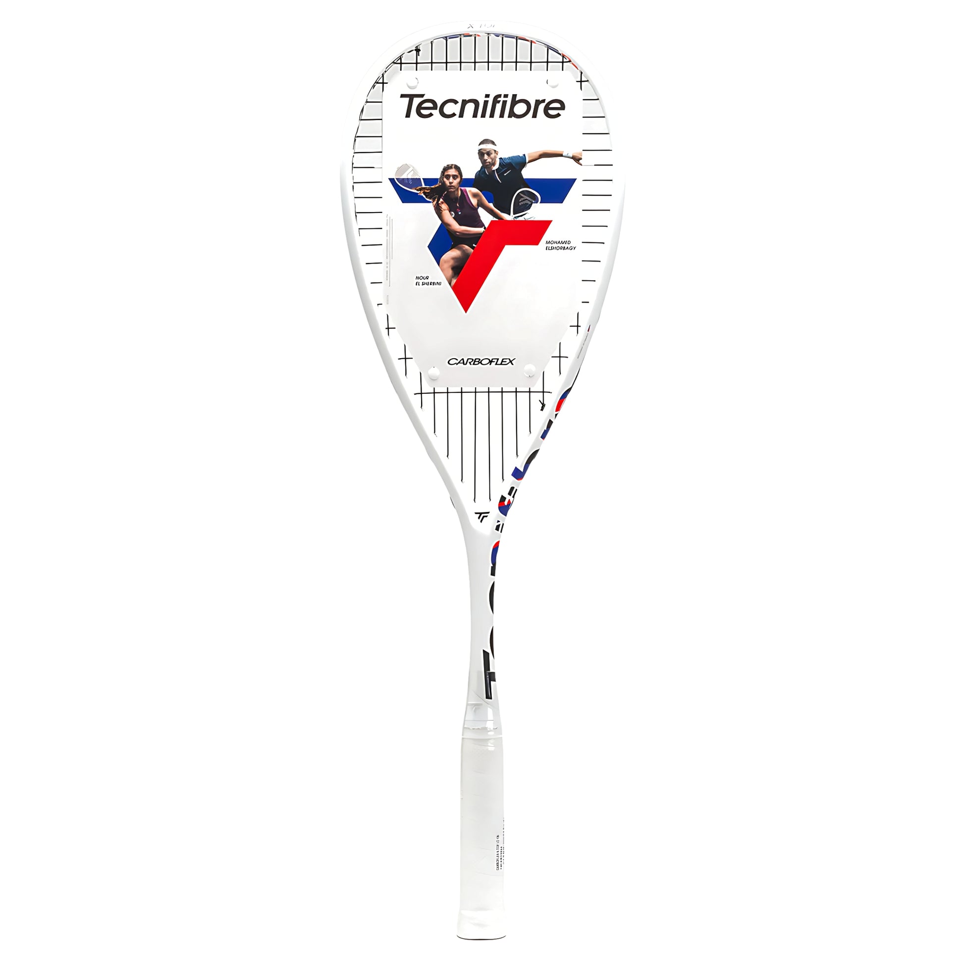 The CARBOFLEX X-TOP V2 range represents a breakthrough in innovation, utilizing X-TOP patented technology. The conventional plastic bumper has been removed and replaced with a revolutionary combination of active fibres for improved resistance, speed, and playability. By incorporating aramid fibres, renowned for their impact resistance, and a PTFE coating that enhances slide, the racket frame is now better protected against abrasion from floors or walls. Without the bumper, the racket becomes more aerodynamic, allowing for smoother air penetration, which translates into faster swings and increased power. This fibre-based structure also reduces vibration and provides more comfort during play. The racket’s aerodynamic design, featuring an Airshaft section, further enhances swing acceleration. Its monoshaft construction is reinforced by X-Arms on both sides to reduce flexibility, ensuring stability and precision upon impact. To improve spin and enhance off-centre shot tolerance, the racket incorporates Extended String Hole technology: 12 enlarged eyelets positioned at 3, 9, and 12 o’clock on the frame allow the strings to “breathe,” enhancing their elasticity. Endorsed by squash legends like Mohamed El Shorbagy, Nour El Sherbini, and Nouran Gohar, the CARBOFLEX X-TOP V2 range has become a favorite among top players worldwide. These athletes are deeply involved in the development and technical refinement of the products. At its core, TECNIFIBRE strives to unlock every player’s potential by offering products that blend high performance with elegance, developed through the rigorous research of TECNILAB under the principle of Identify, Quantify, and Solve. In squash, where more than 58% of shots are played in tight corners, players constantly seek to improve their execution speed. How do you achieve better performance in such a limited space? The answer lies in swing speed. To address this, TECNILAB has worked extensively on improving racket acceleration, ensuring players generate more power in confined spaces. Tests conducted on hundreds of players have revealed a clear correlation between swing speed and skill level: better players have faster swings. Building on this insight, TECNIFIBRE designed the CARBOFLEX X-TOP V2 range to increase racket acceleration, catering to players at every level.